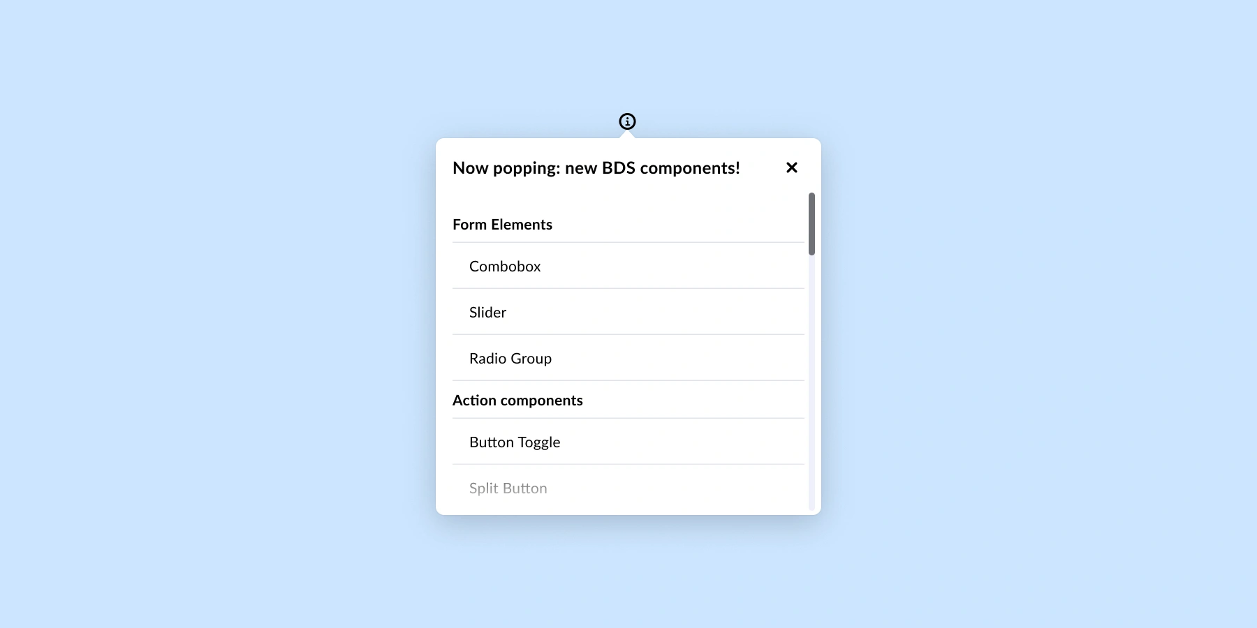 Popovers in BDS are lightweight, focused UI elements, that appear just when you need them—never too soon and never too late.