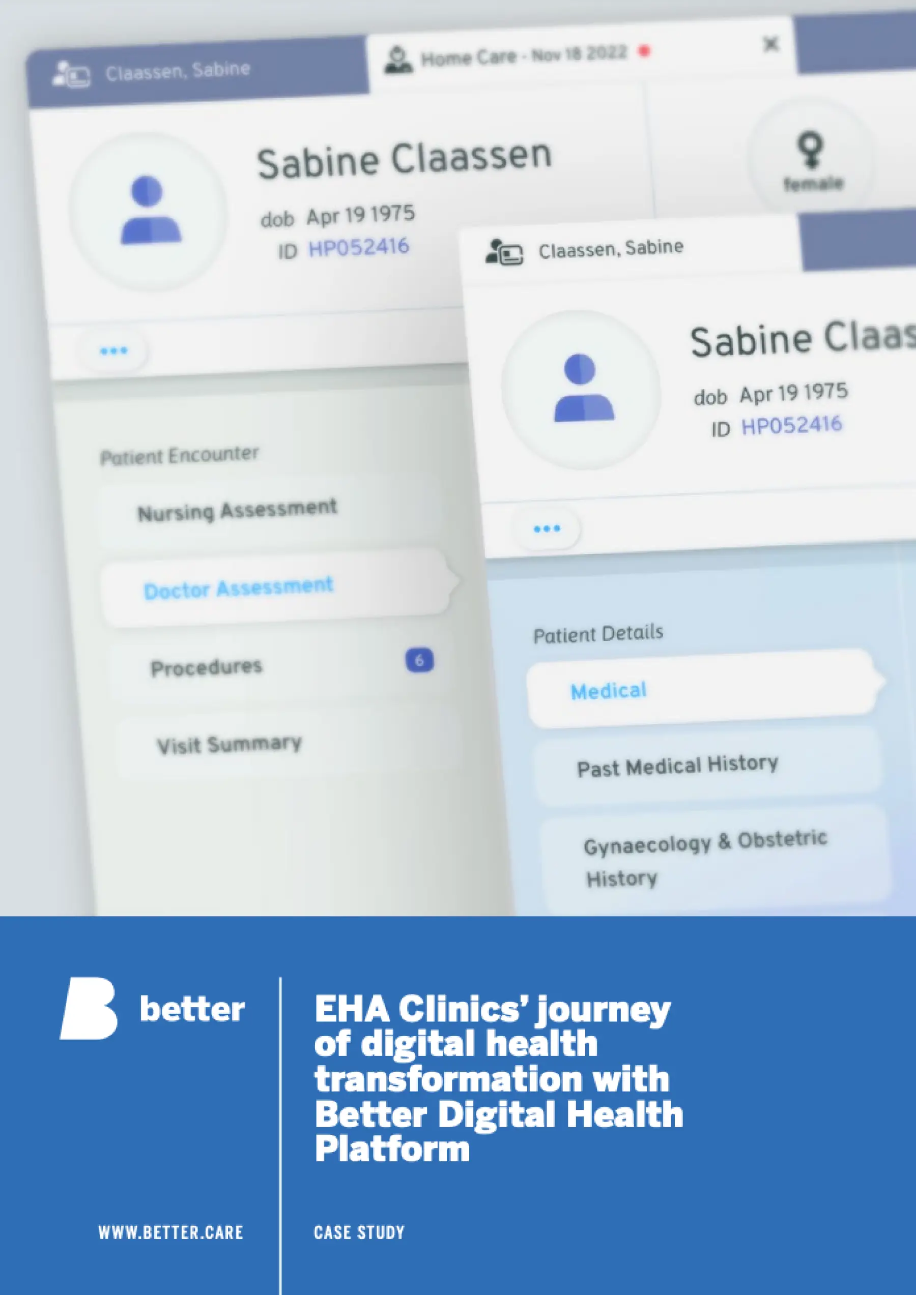 With the use of Better Digital Health Platform and its low-code tools, EHA Clinics developed EHACare with 80 different use cases in just 12 months. EHACare is now an ecosystem of workflow-driven tools to support clinical care, digital/telehealth, home care, community health, continuous quality improvement, and clinical research.