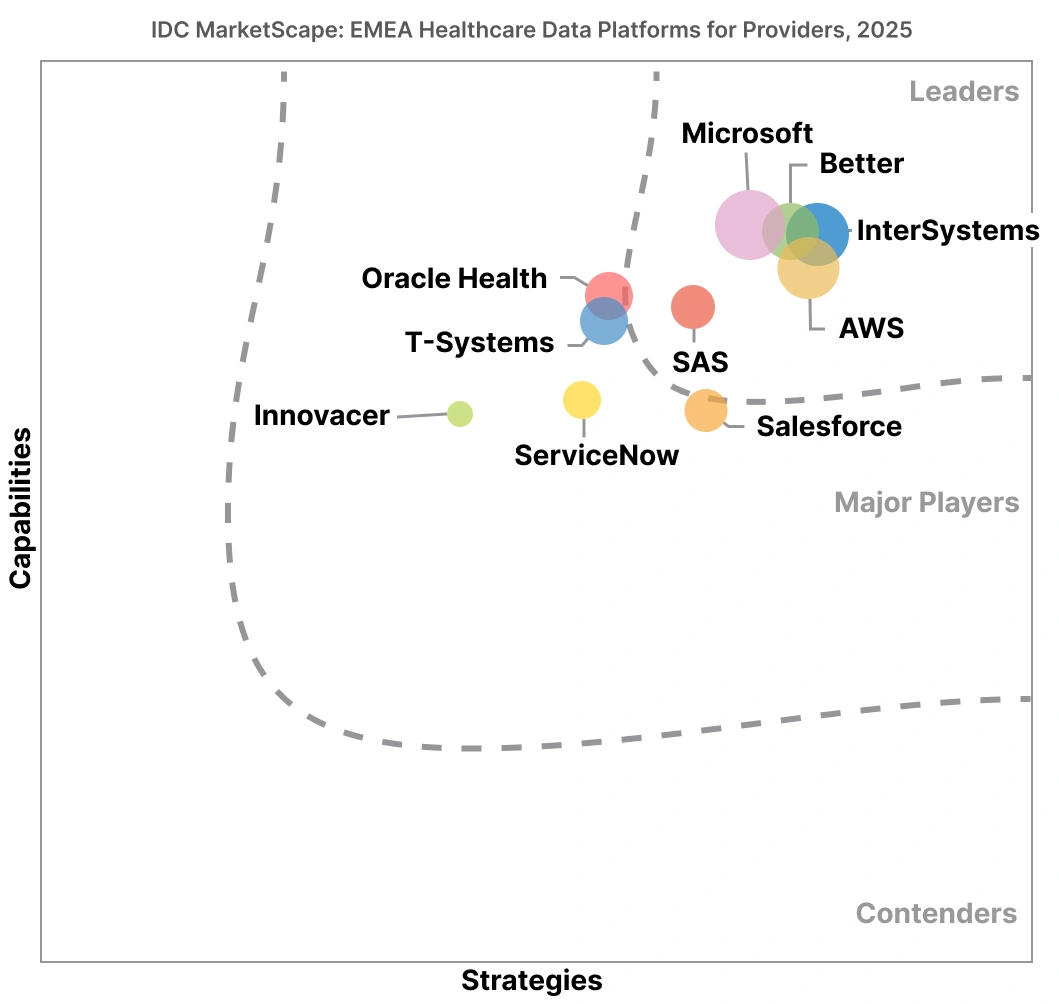 EMEA Healthcare Data Platforms for Providers 2025 Vendor Assessment als „Leader“ ausgezeichnetIm IDC MarketScape wurde