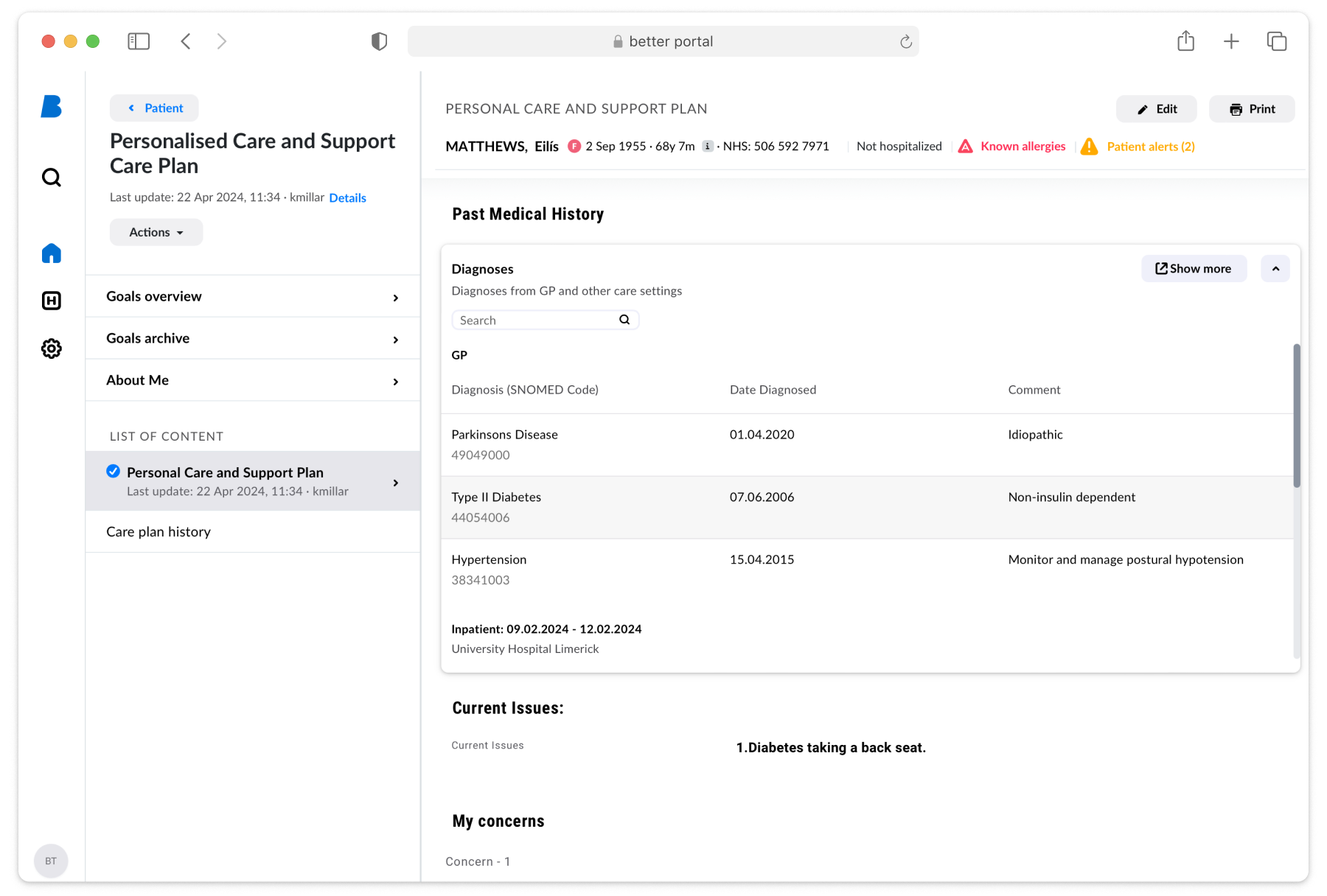 Erstellung, Verwaltung und gemeinsame Nutzung von individuellen Pflegeplänen, um durch koordinierte Versorgung bessere Behandlungsergebnisse zu erzielen.