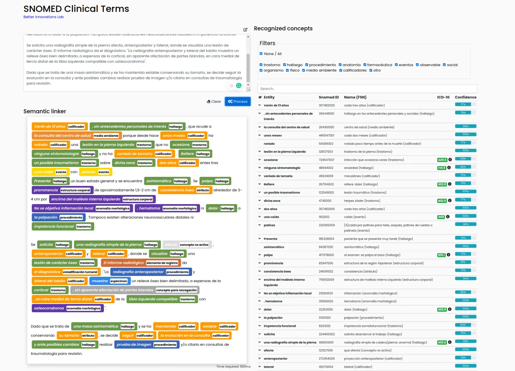 El equipo Better, Robert Tovornik y Matic Bernik, junto con Luis Marco Ruiz de Norwegian Center for E-health Research, utilizaron un marco, que ya ofrece un modelo en español, y cambiaron el enfoque en la tarea de reconocer las enfermedades. Utilizaron el conjunto de datos para entrenar un modelo NER (reconocimiento de entidad nombrada) que tiene el poder de identificar elementos y patrones clave en el texto y localizar entidades en cuestión, en este caso, enfermedades clínicas. Lo hace procesando y comprendiendo grandes cantidades de datos estructurados y no estructurados. Agregaron algunos trucos y ajustes propios para mejorar el rendimiento y asegurar un modelo de reconocimiento de enfermedades competente.